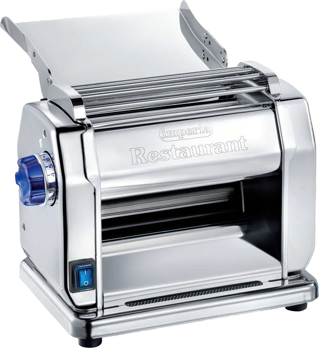 Die halbprofessionelle Maschine für Restaurants und Hotels stellt aus Ihren natürlichen Zutaten in kurzer Zeit (bis zu 16 kg/Std.) Teigplatten für gute Hausmachernudeln mit 210 mm Breite und in 10 unterschiedlichen Stärken her.