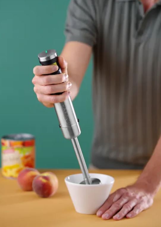 Smart Pressure-Funktion: Je stärker die Taste gedrückt wird, desto höher ist die Klingengeschwindigkeit - die stufenlose Geschwindigkeitsanpassung sorgt für eine bessere Kontrolle des Mixvorgangs