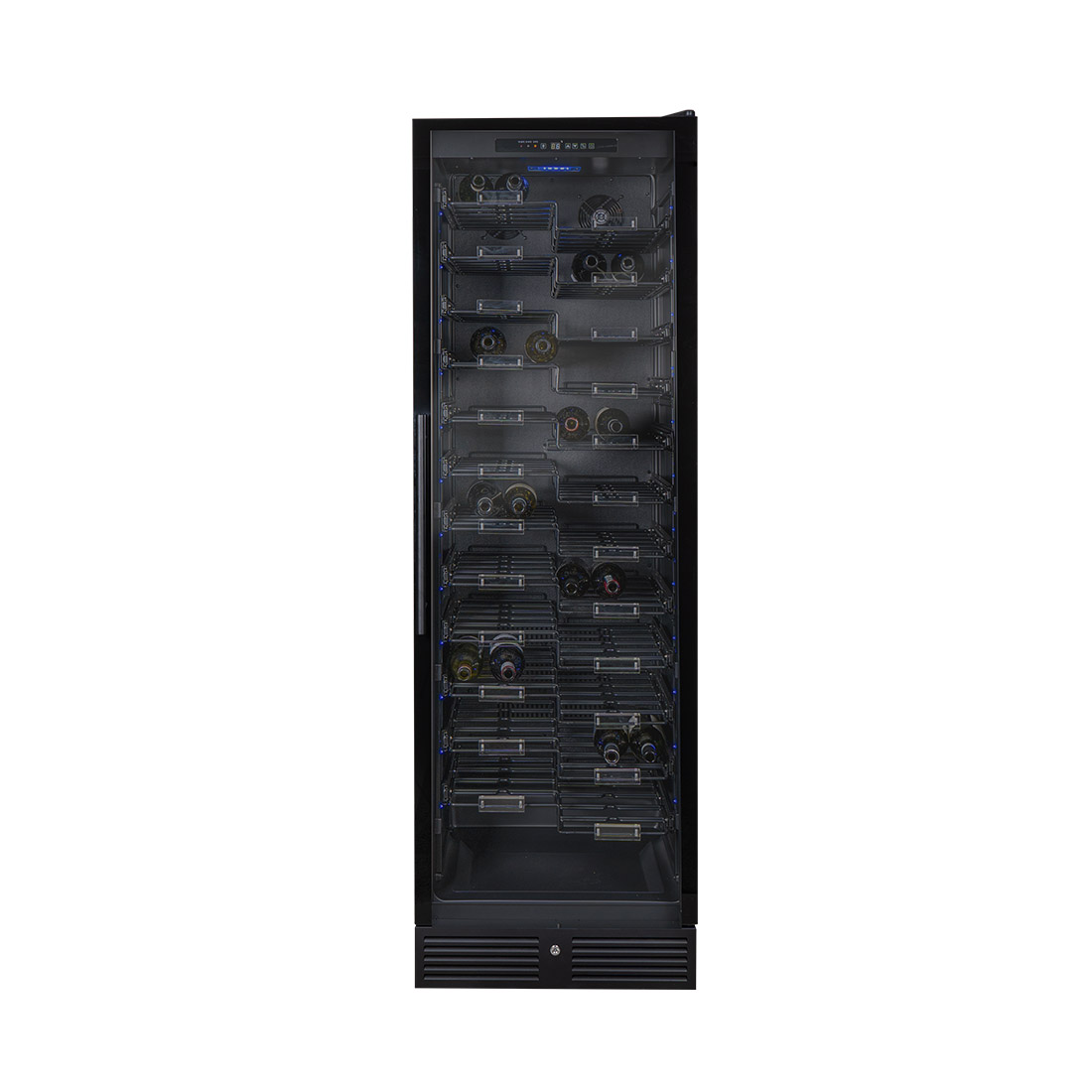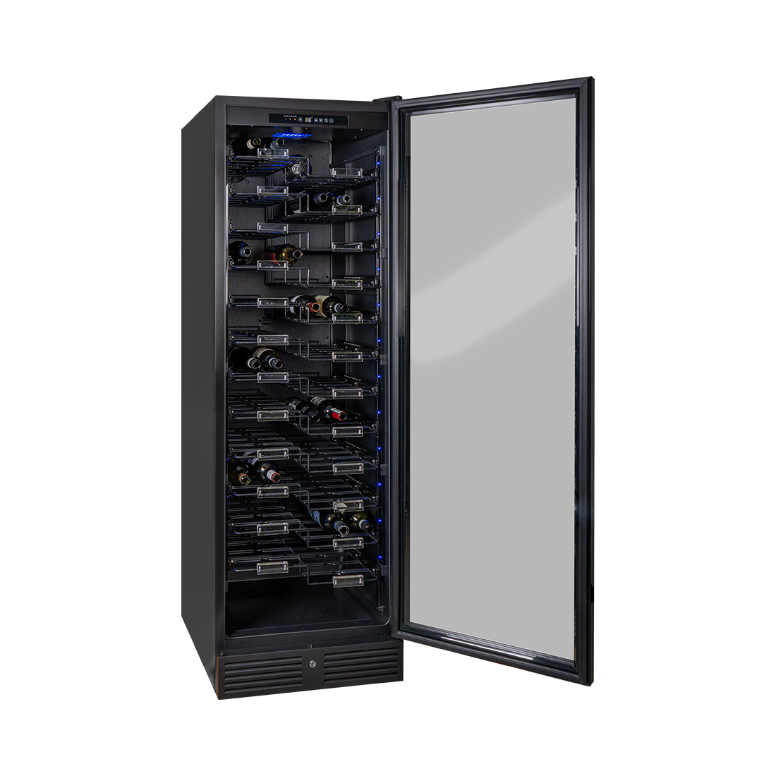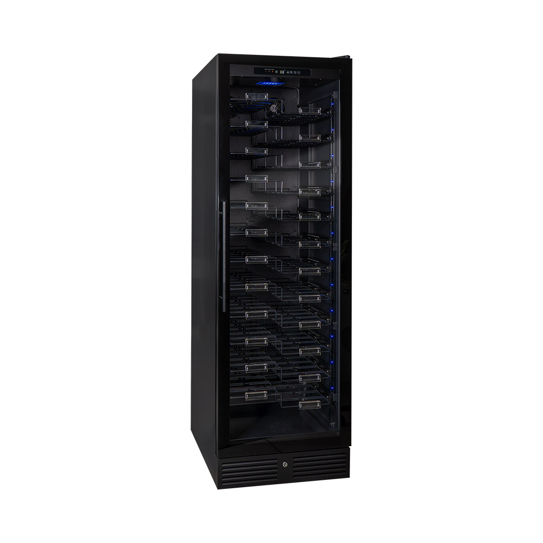 Der Kibernetik WKZ 150 Weinklimaschrank für bis zu 157 Flaschen vereint ästhetisches Design mit praktischer Funktionalität. Mit seinen 12 Zickzack-Regalen bietet der WKZ 150 ausreichend Platz für jede Weinsammlung und präsentiert sie stilvoll.