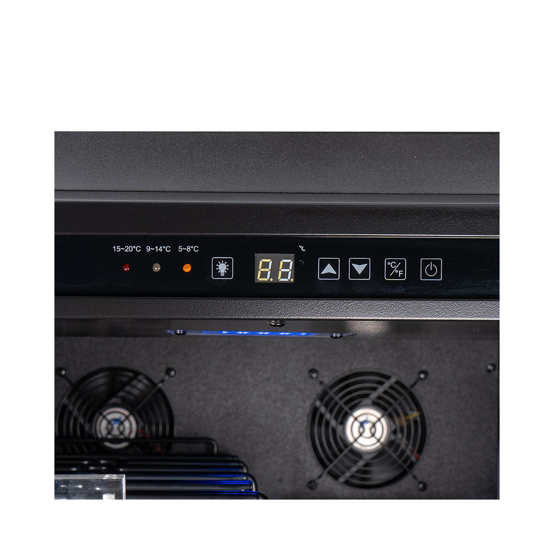 Die Temperatur lässt sich zwischen 5 und 20 °C einstellen, um eine optimale Lagerung für verschiedene Arten von Wein zu gewährleisten. Dadurch können Rot- und Weissweine sowie Champagner und andere Getränkearten bei idealen Bedingungen aufbewahrt werden.