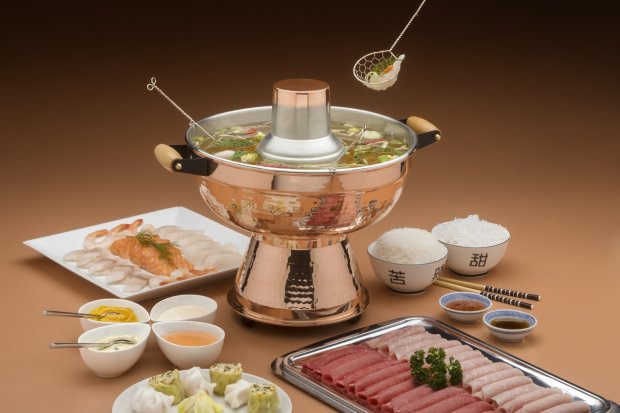 Fondue Chinoise oder Fischfondue mit dem traditionellen Mongolentopf für den besonderen Anlass.