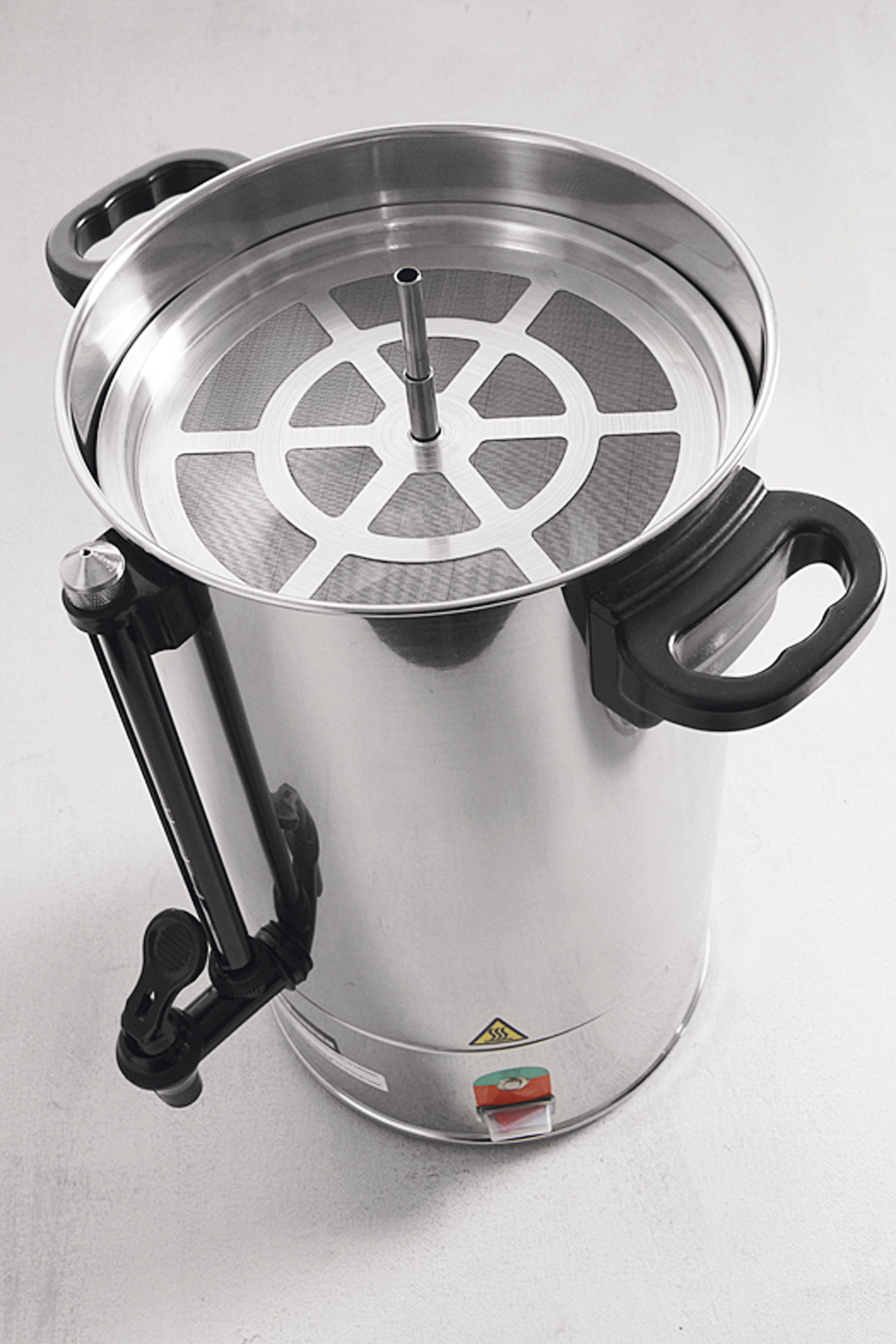 Der Perkolator hält den Kaffee nach dem Brühen auf Serviertemperatur.