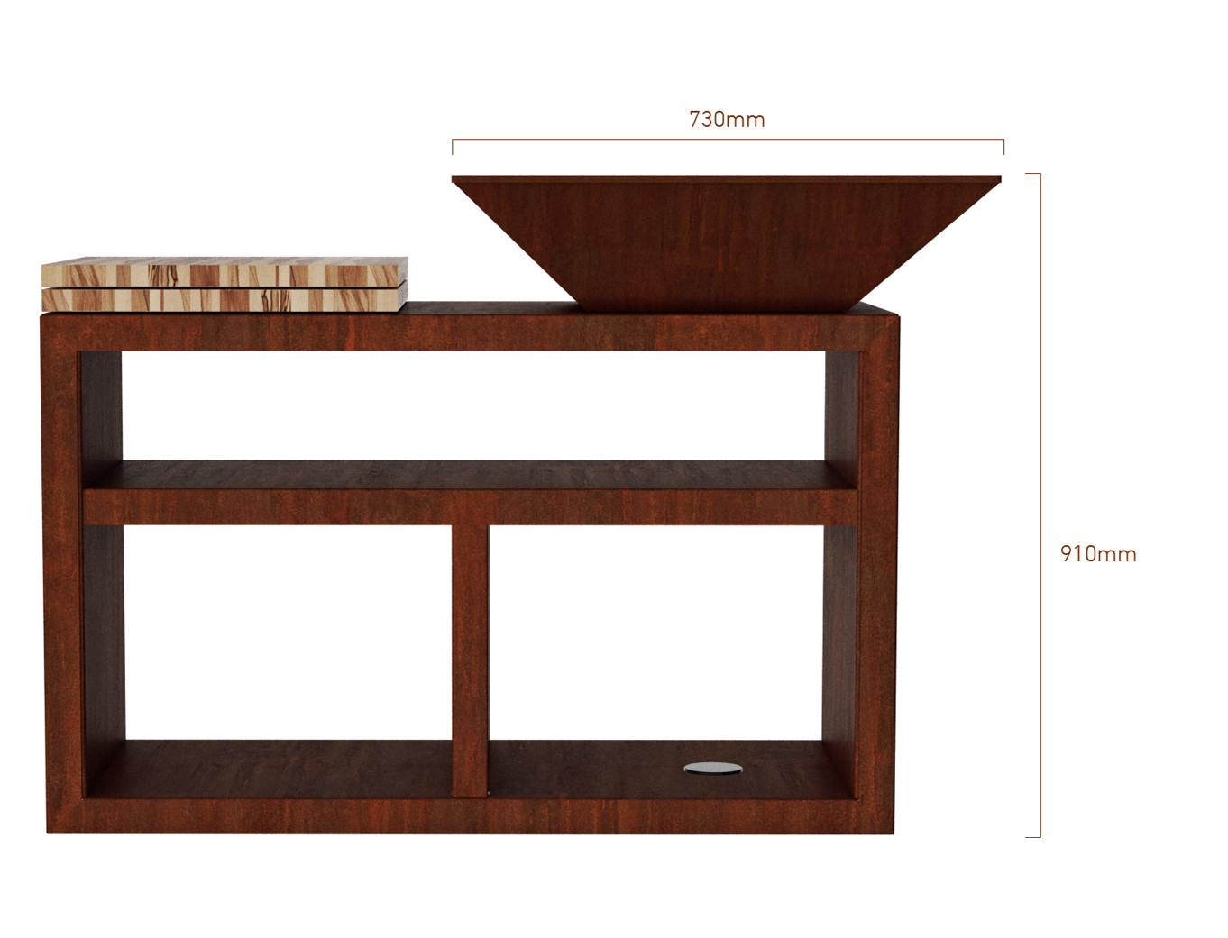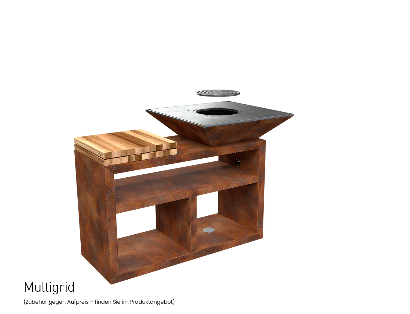 Vulcanus-Grills haben ein hochwertiges, patentiertes Design. Ihr Körper besteht aus COR-TEN-Stahl mit Patina und ist mit einer Akkumulationseinlage ausgestattet. Diese sorgt für eine bessere Zirkulation der heißen Luft im Inneren des Grills. Zudem garantiert sie thermische Stabilität und reduziert den Holzverbrauch beim Grillen.
