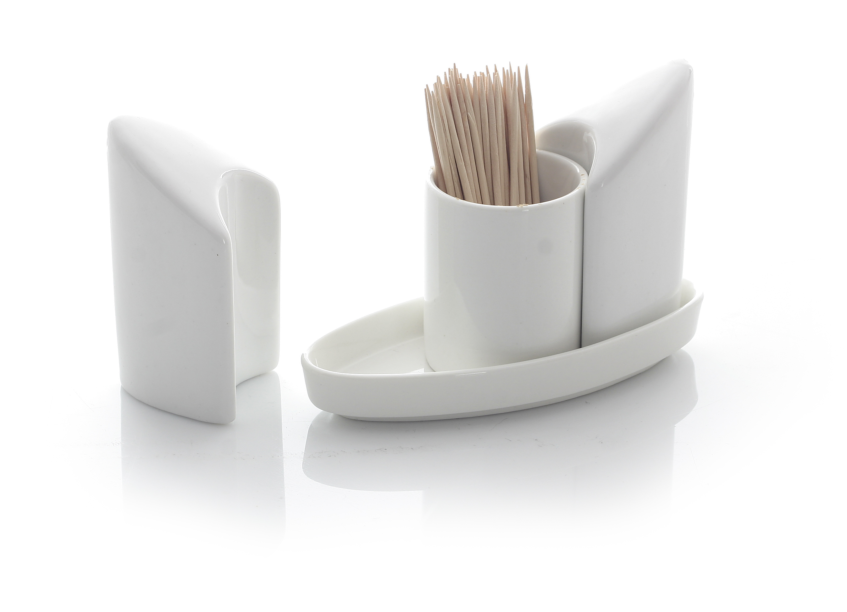 Porzellan Menage (Pfeffer, Salz & Zahnstocher), HENDI