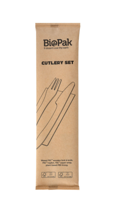 Holz- Besteckset gross, Messer+Gabel gewachst +Serviette nature